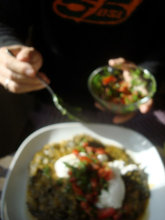 lentils and poached eggs breakie