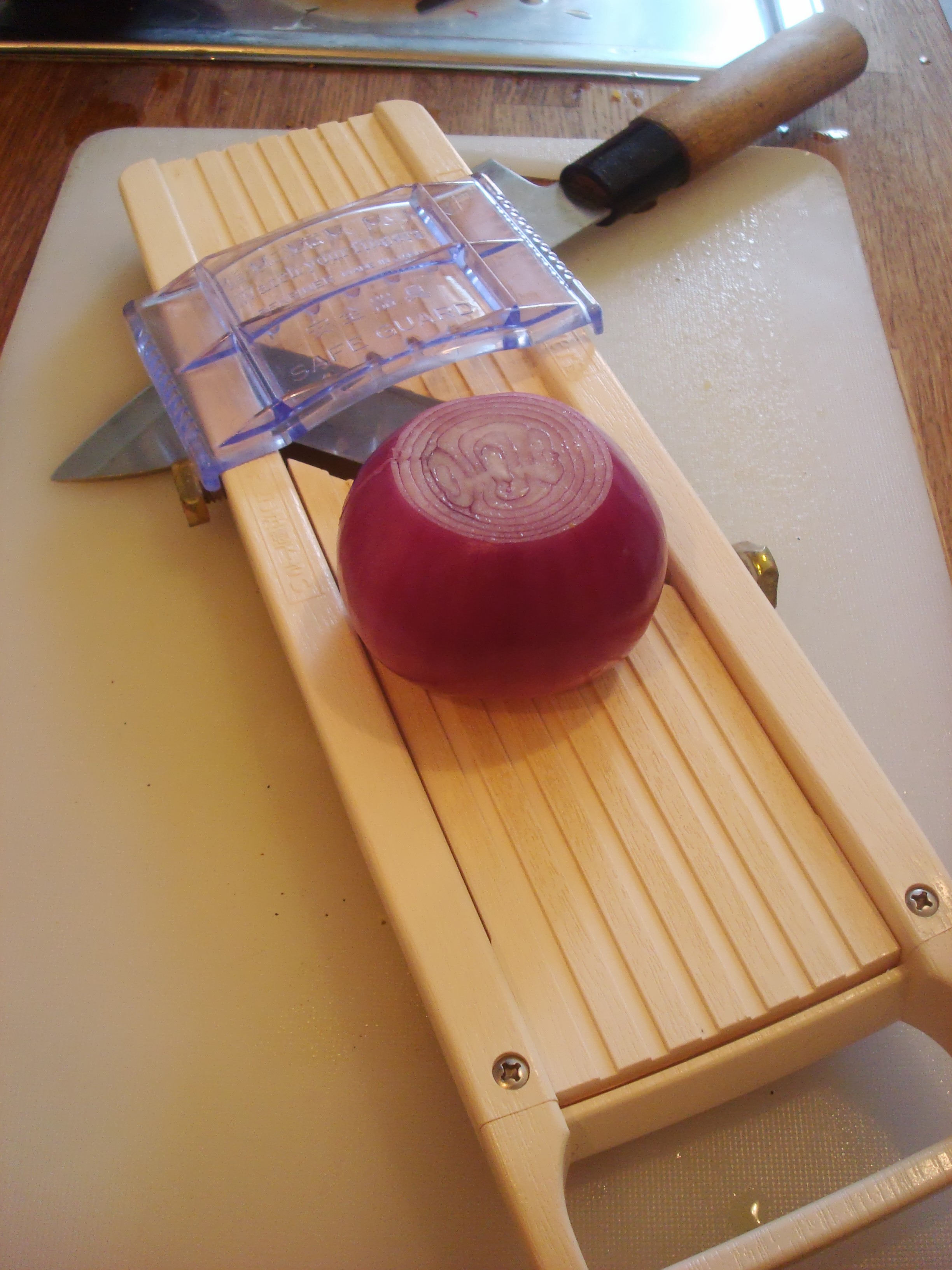 mandoline slicer and red onion