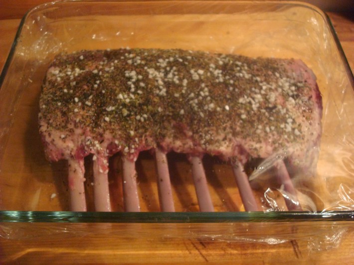Mustard Rack of Lamb with glazed shallots and tomatoes
