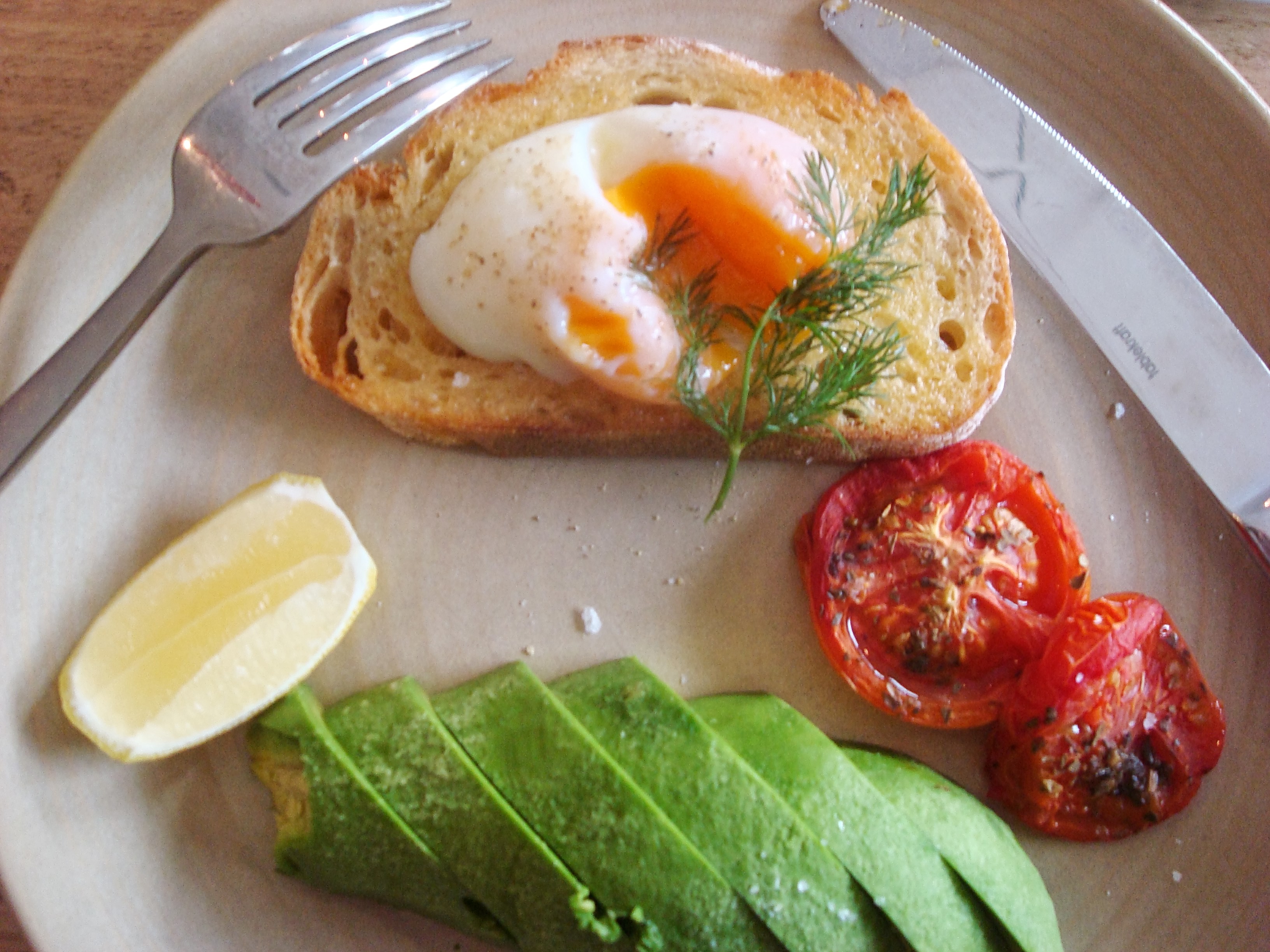 poached egg, grilled tomato and avocado