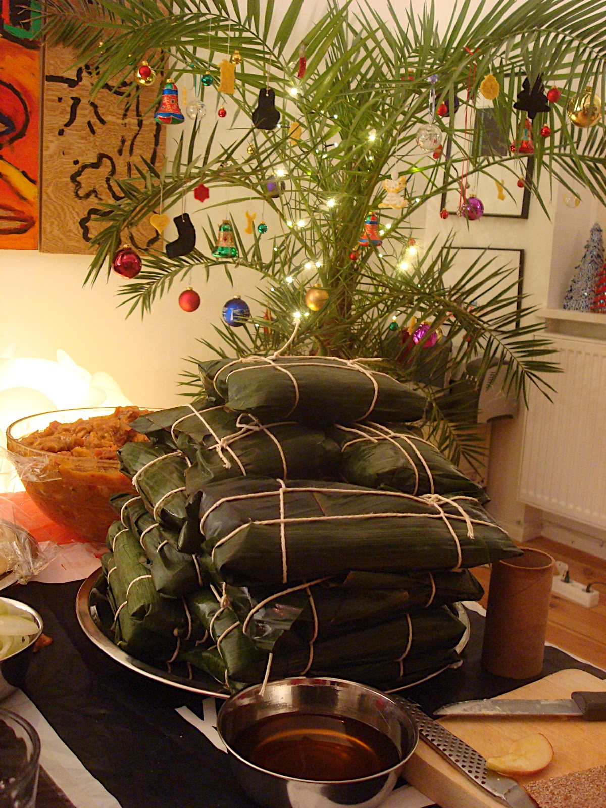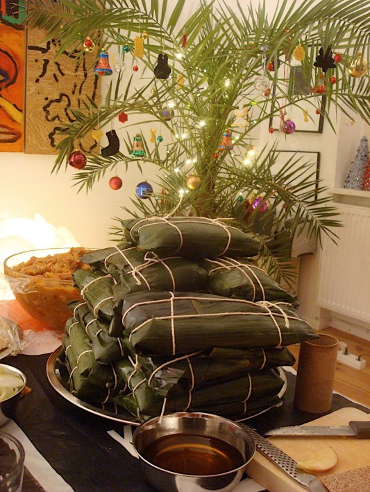 wrapped hallacas ready for final cooking, one hour in boiling water