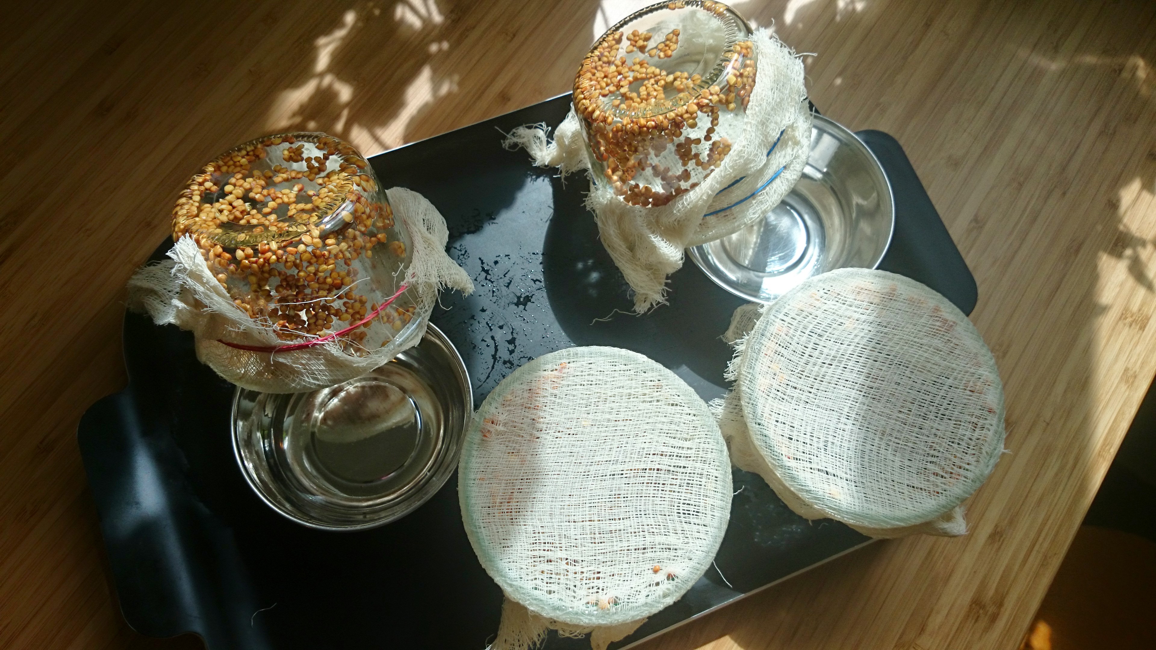 first day after soaking, seeds draining