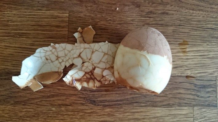 peeling tea egg