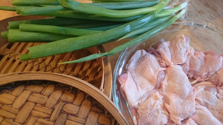 chicken bamboo steamer ans spring onions