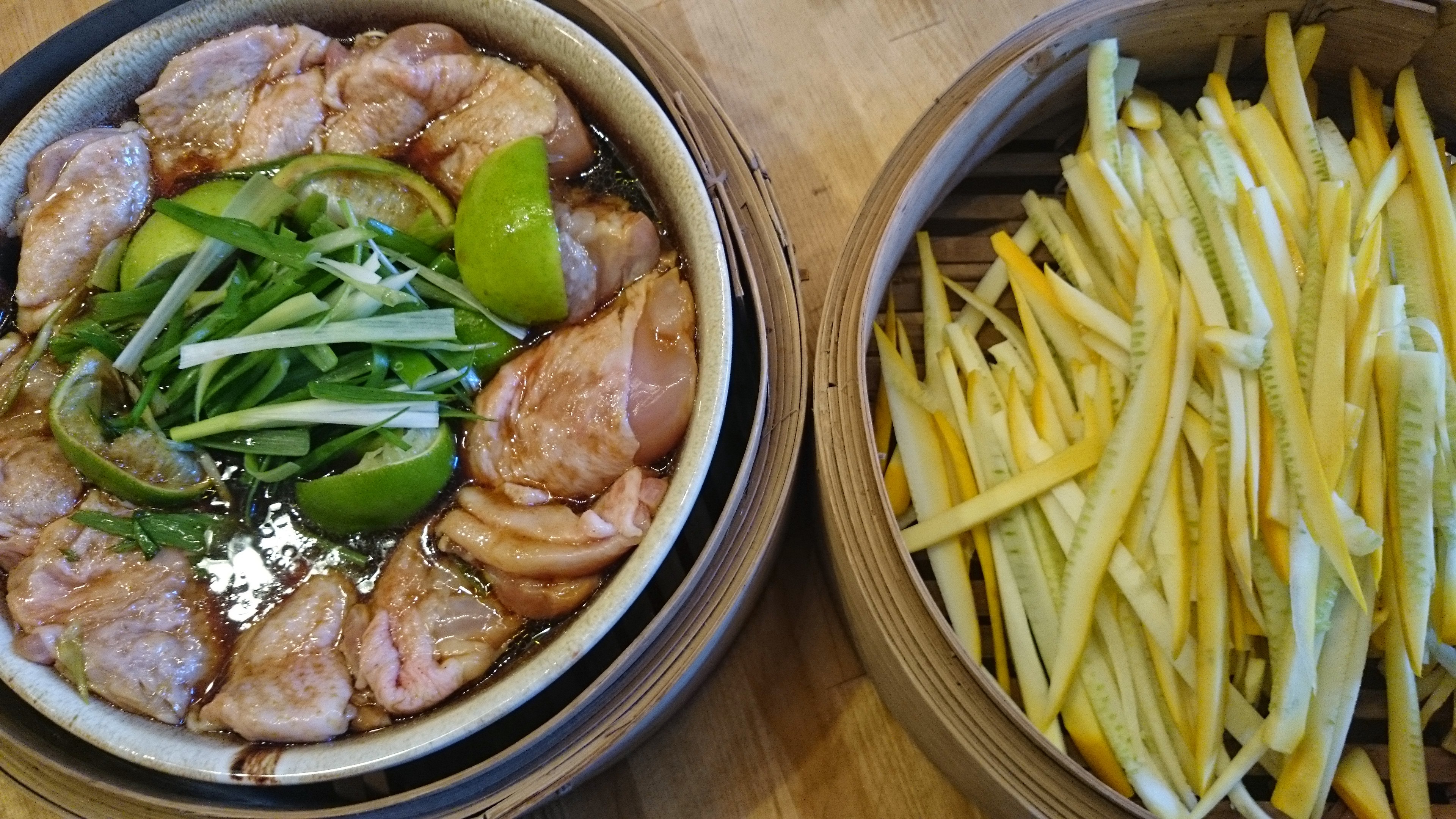 ← One storey, another and perhaps a few more: Steamed Lime Chicken with its Summer Friend the Courgette.
