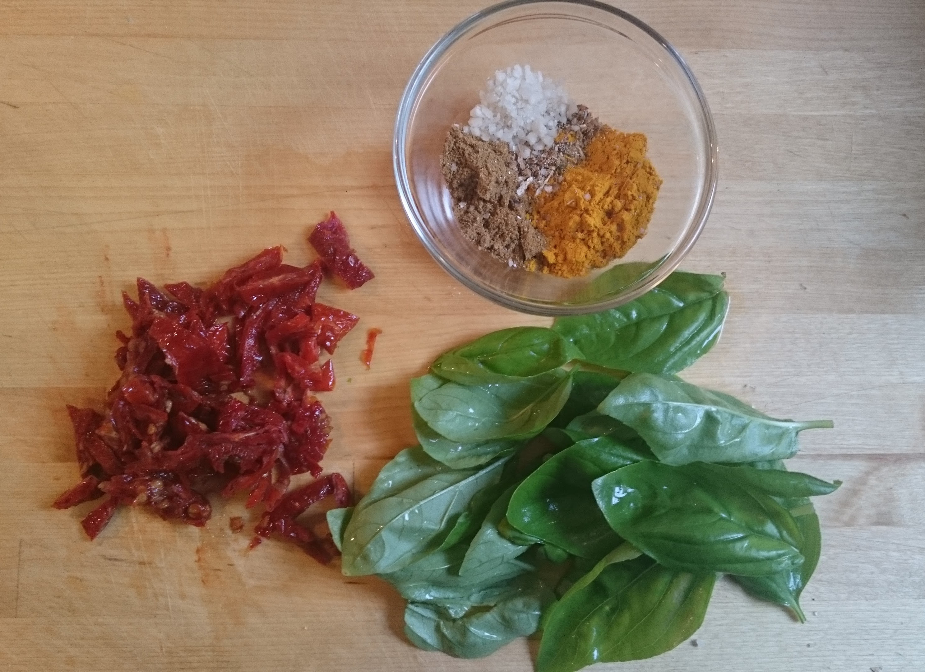 sun dried tomatoes, curry and basil