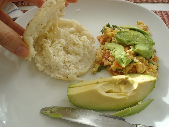 arepa, perico and avocado